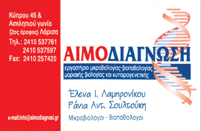 ΑΙΜΟΔΙΑΓΝΩΣΗ - ΛΑΜΠΡΟΝΙΚΟΥ Ε. - ΣΟΥΛΤΟΥΚΗ Ρ. Ο.Ε.