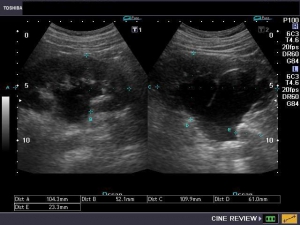 Η διάγνωση της νόσου γίνεται υπερηχογραφικά. Η διεύρυνση της νεφρικής πυέλου φαίνεται ικανοποιητικά στον υπερηχοτομογραφικό έλεγχο, κατά τον οποίο μετρώνται οι διαστάσεις τόσο της νεφρικής πυέλου και τον νεφρού, όσο και των ουρητήρων (αν αυτό είναι εφικτό). Ωστόσο, στις περιπτώσεις που το πρόβλημα είναι συγγενές, μπορεί να εντοπιστεί και προγεννητικά με το προγεννητικό υπερηχογράφημα, όπως αναφέρεται πιο πάνω.